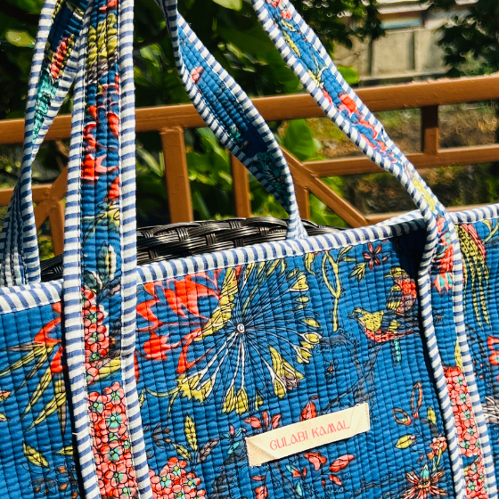 Blue Blush Quilted Tote Bag - 100% Cotton