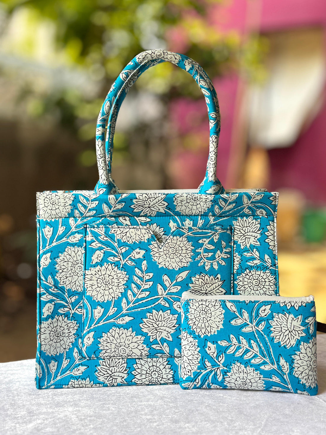 Smart & Stylish Handblock Tote BagA beautifully hand block printed smart tote, designed for style...
